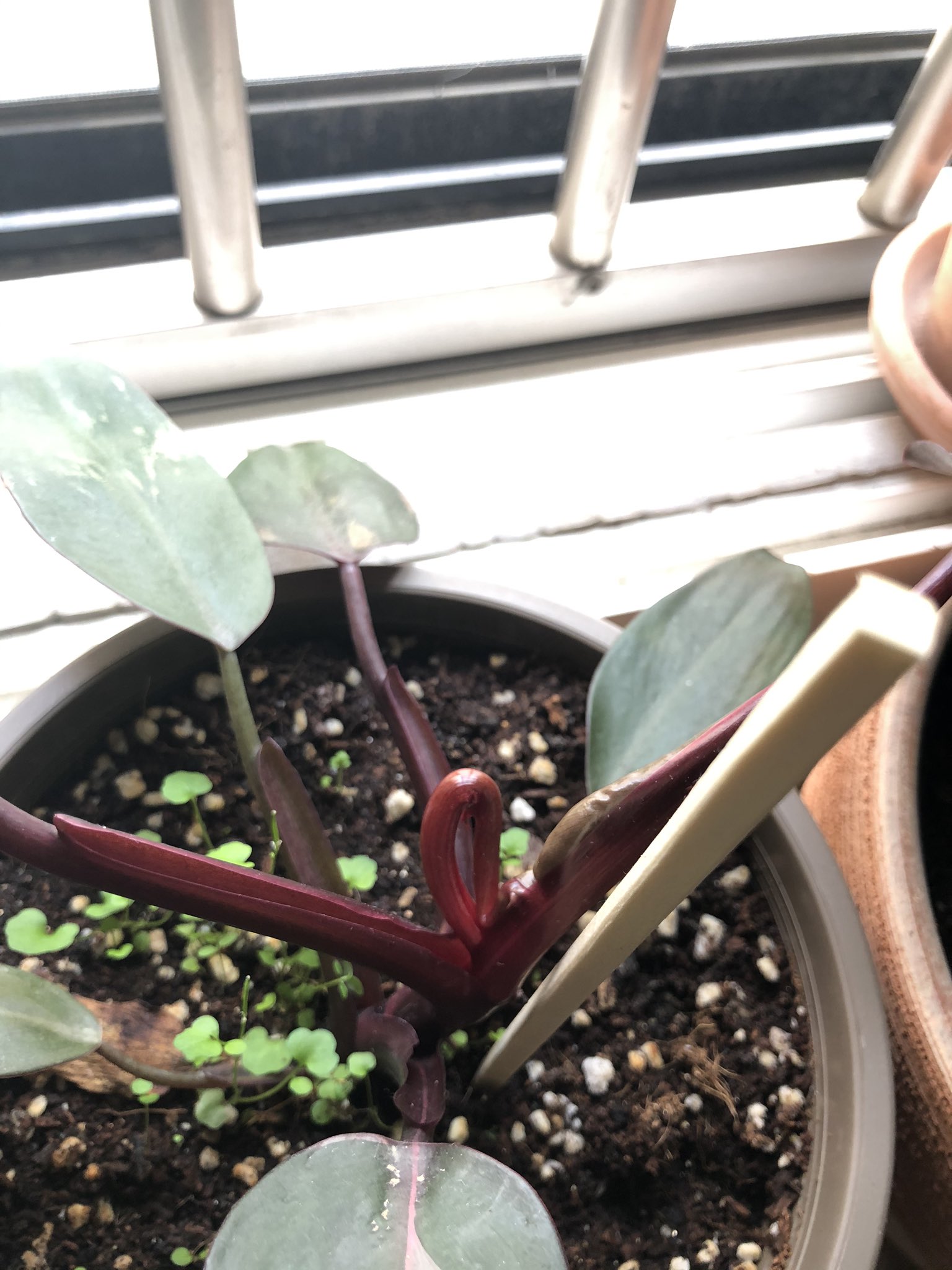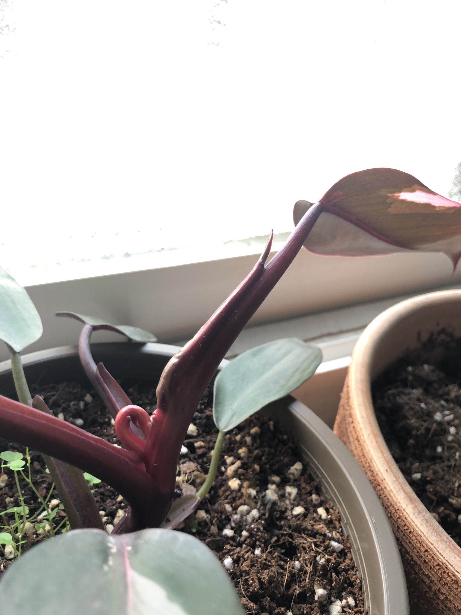 필로덴드론 핑크프린세스가 장마를 맞아 신엽을 내놓고도 한참을 자라지를 못하고있다가 오늘 신엽을 펼쳤다. 첫번째 사진이 6.23일자에 찍은 사진, 신엽이 펼쳐진 사진이 07.02일자인 오늘 찍은 사진이다.