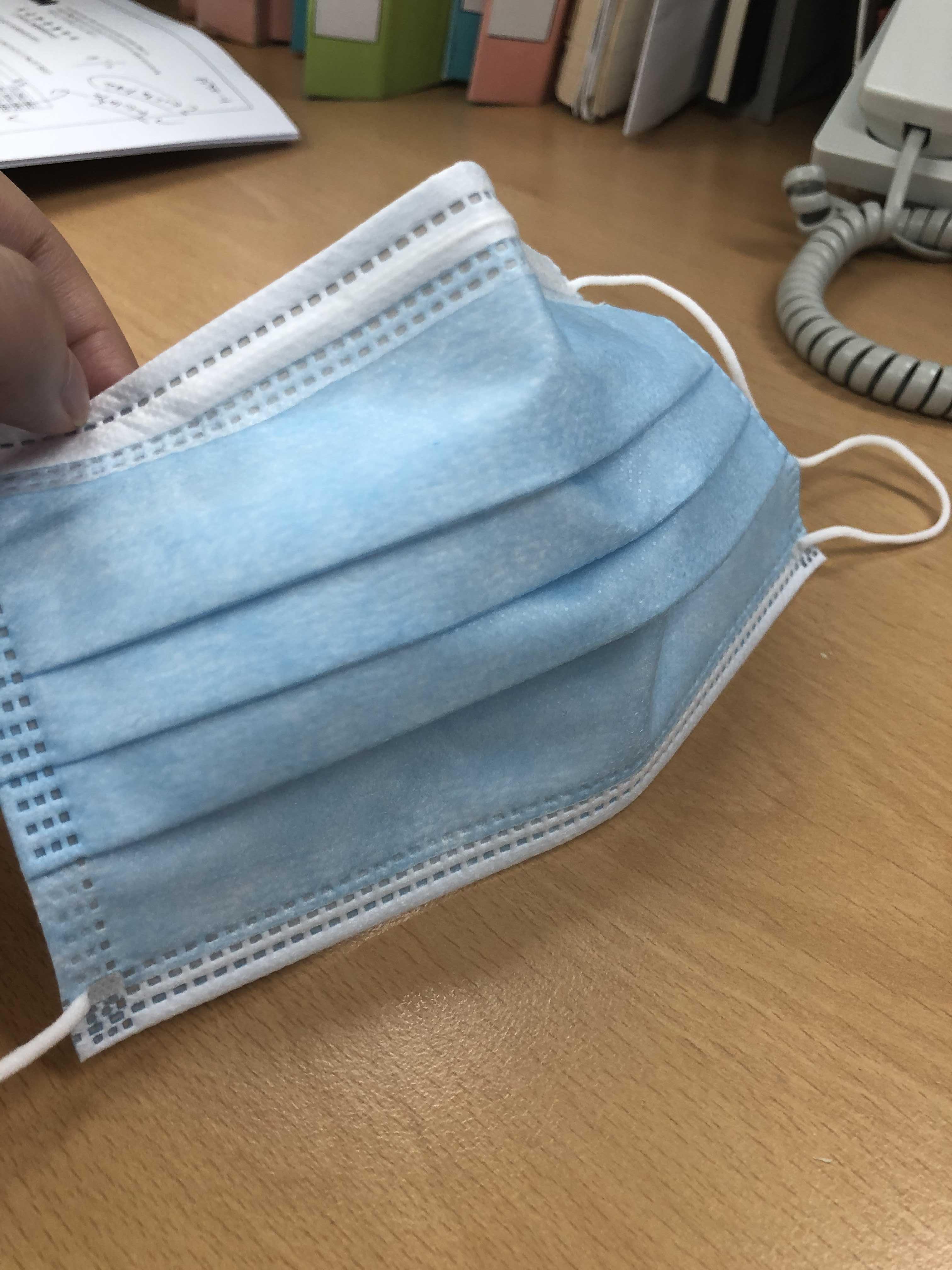 먼저 첫번째 제일 쉬운 방법입니다. 파란색 덴탈마스크는 파란색 부분이 앞면입니다. 즉, 바깥면이고, 하얀 부분이 우리의 입이 닿는 뒷면이 됩니다. 이렇게 쉽게 구분이 일단 가능합니다. 하지만 하얀 마스크의 경우에는 앞 뒤로 구분하기 어려우니 나머지 구분방법들을 추가로 적어보았습니다.